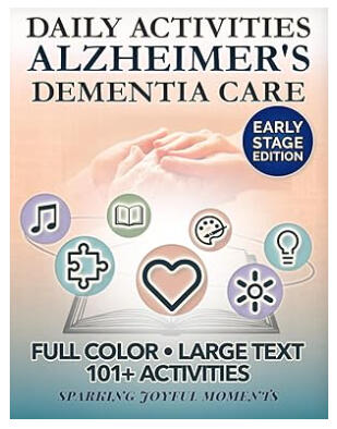 Sparking Joyful MomentsA gentle, full-color activity book created for early-stage Alzheimer’s and dementia care.Designed with empathy, each day offers a calming structure with prompts, visuals, and exercises that help reduce anxiety, inspire conversation, and bring joy to daily routines.✅ Large fonts & soothing visuals